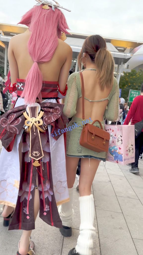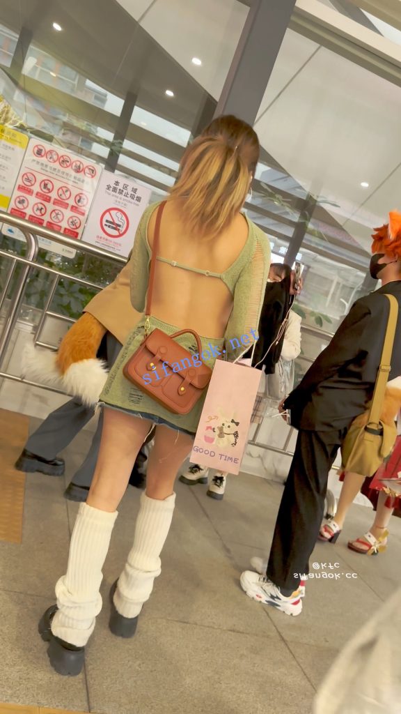 • 露背装学生妹和闺蜜逛街·过膝袜灰色窄内骚气外露